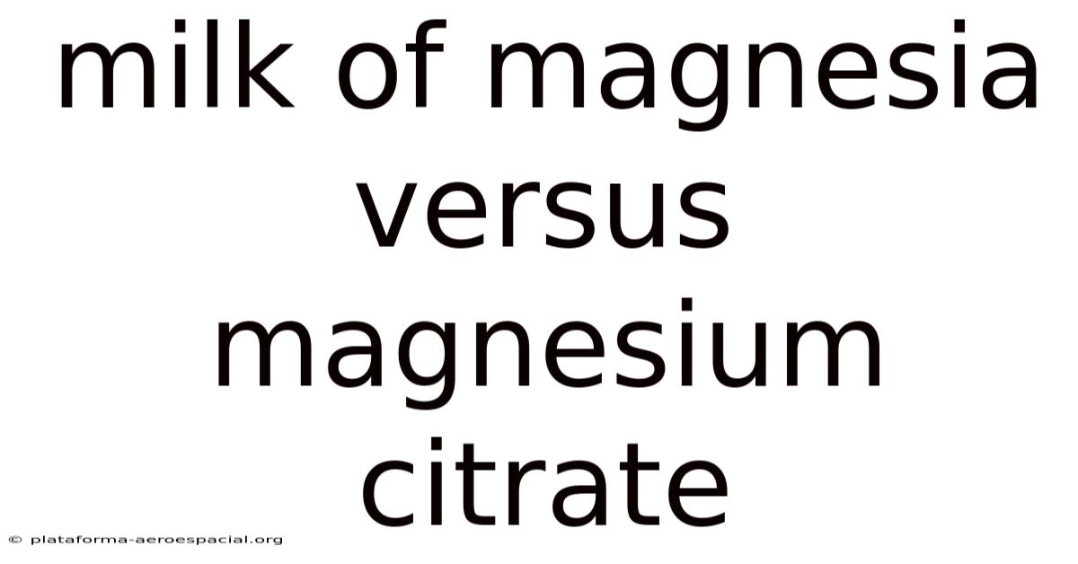 | Feature | Milk of Magnesia (Magnesium Hydroxide) | Magnesium Citrate |